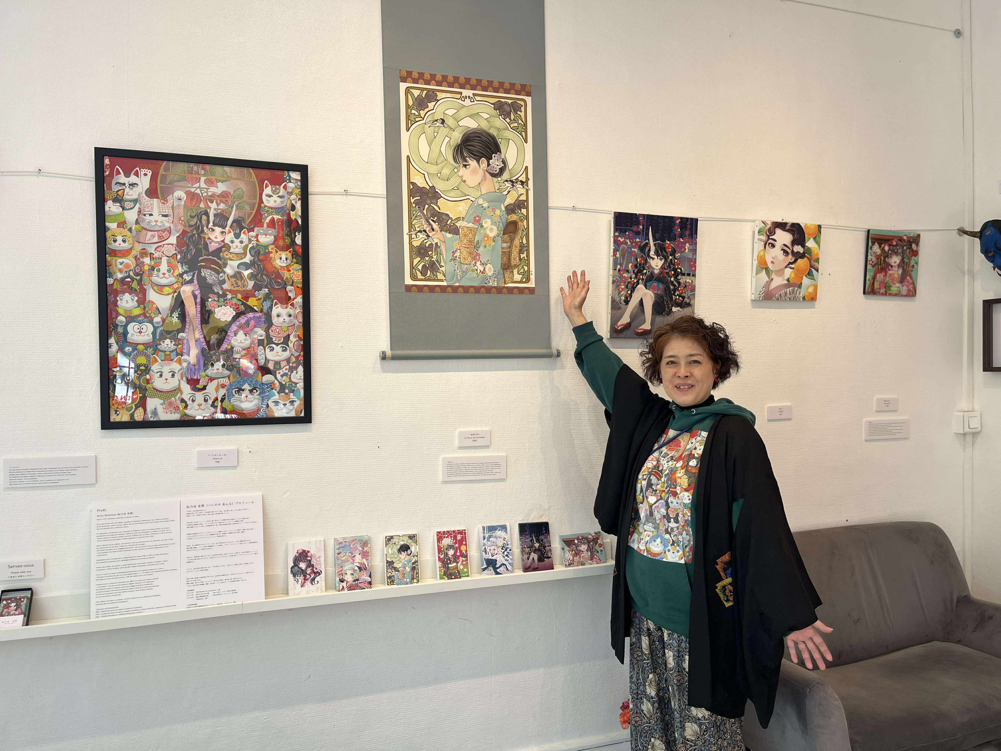 10代の頃の自分自身を投影した着物姿の少女を中心に、九谷焼の招き猫や加賀八幡起き上がりなど、金沢の伝統文化をモチーフとして描いています。